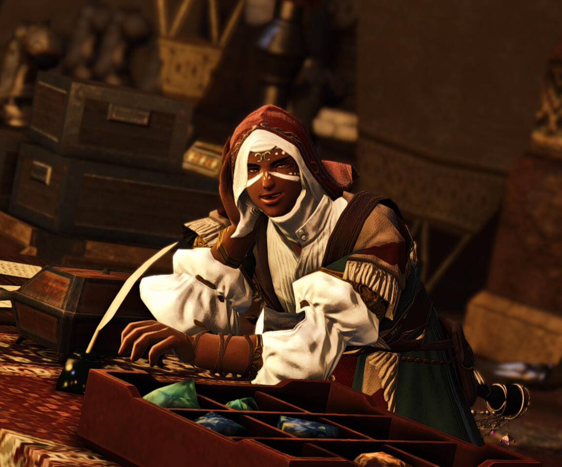 Languages: Eorzean (Fluent)| Dalmascan (Conversational)| Thavnairian (Fluent)| Ala Mhigan (fluent)